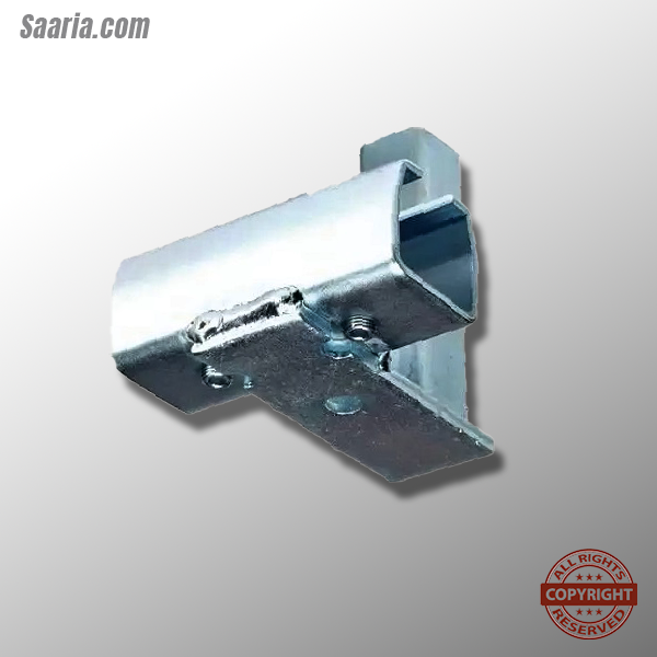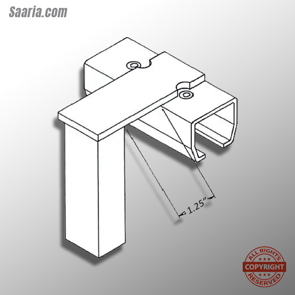 Roller Track Floor Mount Splice Connector supports the track system from the floor level. The column of the hardware is 1 1/4-inch square 12-gauge steel wall tubing. Theses columns telescope upon the track supporting units and the base plates.